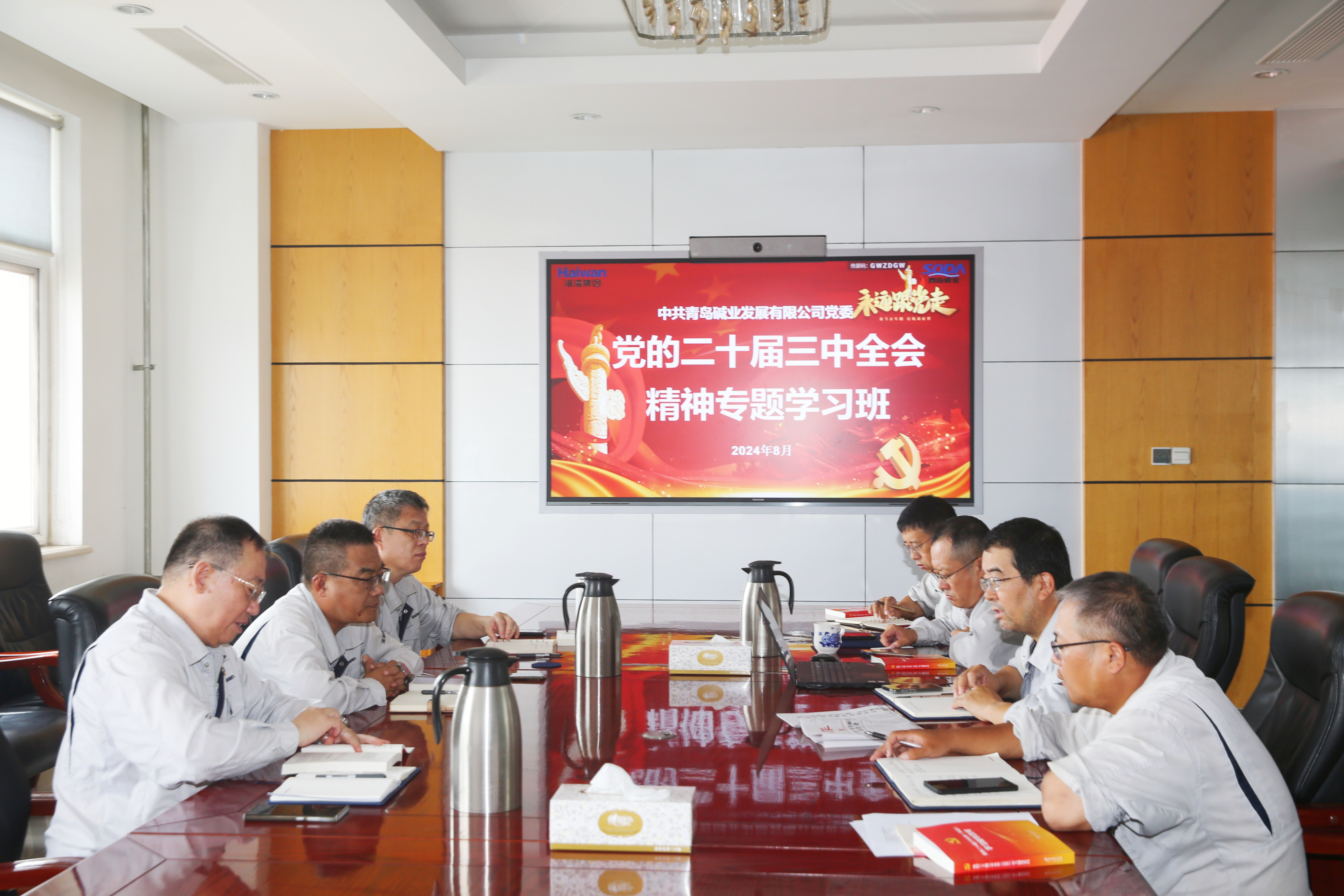 8月8日至8月10日,根據(jù)市委、市國(guó)資委黨委及海灣集團(tuán)有關(guān)部署要求,青島堿業(yè)黨委舉辦了為期三天的黨的二十屆三中全會(huì)精神專題學(xué)習(xí)班,企業(yè)領(lǐng)導(dǎo)班子成員深入學(xué)習(xí)全會(huì)文件,自覺(jué)領(lǐng)會(huì)全會(huì)精神,統(tǒng)一了思想行動(dòng)。學(xué)習(xí)班由企業(yè)黨委書記、董事長(zhǎng)于英明主持,領(lǐng)導(dǎo)班子成員及黨群部相關(guān)人員參加學(xué)習(xí)。